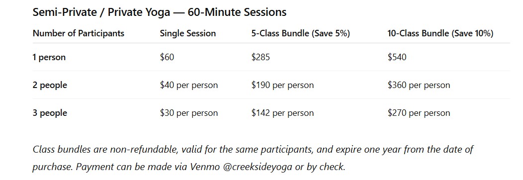 Classes are offered by appointment only. There is no fixed weekly schedule—session times are arranged directly with each student based on individual needs and my availability. Sessions are available throughout the day.