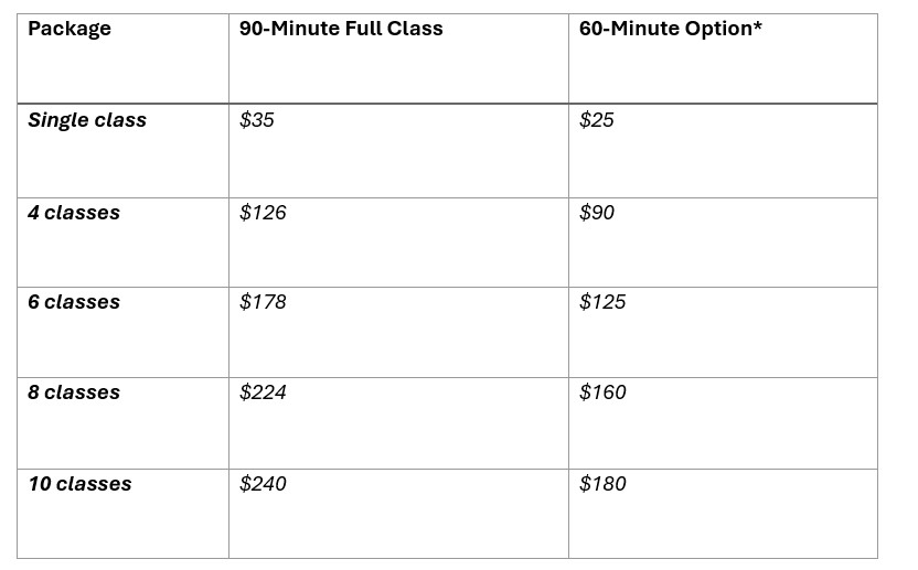 Class space is limited to 4 students — please sign up at least 24 hours in advance to secure your spot.